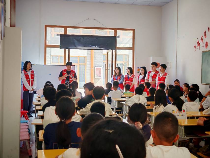 下午兩點半,支教授課正式開始。在數學課堂中,隊員馬卓鈺為學生們帶來了邏輯推理的內容,讓學生在數學知識中感受推理“環環相扣”的樂趣;在“兩彈一星”特色課程中,隊員林芷妍用認真且有趣的講述為大家介紹了“輻射”的知識,拓寬學生眼界,帶來了不一樣的科普體驗。在課程結束后的作業輔導時間中,隊員李昭燁、馬卓鈺維持自習秩序、幫助學生答疑解惑,有針對性地開展了輔導工作。