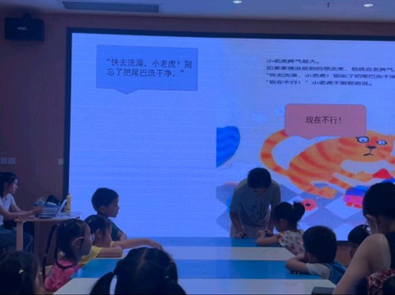 7月19日,人民路館的首場活動以中文繪本《我的幸運的一天》拉開序幕。團隊成員化身故事講述者,用生動的語言再現小豬智斗狐貍的情節,隨后設計的“圈套游戲”讓孩子們在模擬場景中主動思考應對挑戰的方法,F場孩子們爭相舉手分享創意,在歡笑中領悟智慧與勇氣的意義,互動參與度達100%。