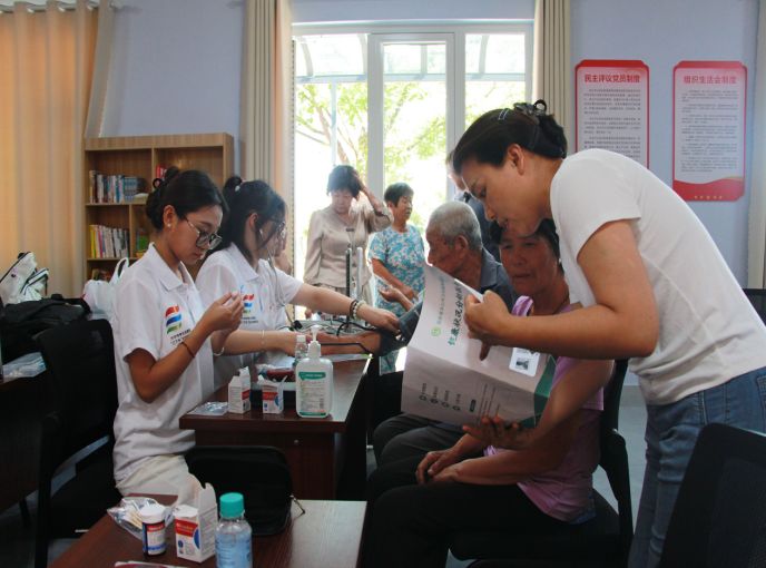 志愿服務隊聯合山東第二醫科大學附屬醫院、東營市人民醫院的多領域專家,深入基層一線開展義診服務,并針對常見疾病耐心問診,給出科學診療建議。服務隊充分發揮專業優勢,為居民提供量血壓、測血糖等基礎醫療服務,對指標異常村民給予健康指導,叮囑定期監測、及時就醫。此次義診活動,不僅讓村民在家門口就享受到了便捷、專業的醫療服務,也進一步提升了護理學院學子的社會實踐能力和團隊協作精神,展現了青年學生的責任與擔當。
