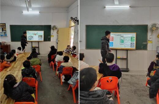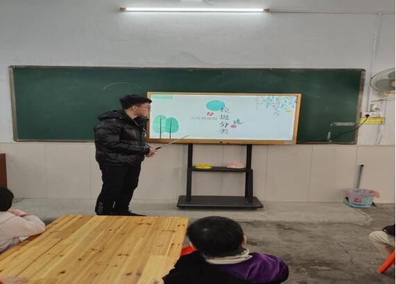 在課堂中,隊員王秉銓以圖片展示的方式讓同學們直觀地感受到沒有進行垃圾分類給環境帶來的破壞,引導小朋友們要從小培養起垃圾分類、保護環境的意識。然后,王秉銓從日常生活中產生的垃圾分類、每一類垃圾對應的標識和物品等方面入手,為小朋友們詳細介紹垃圾分類的有關知識。
