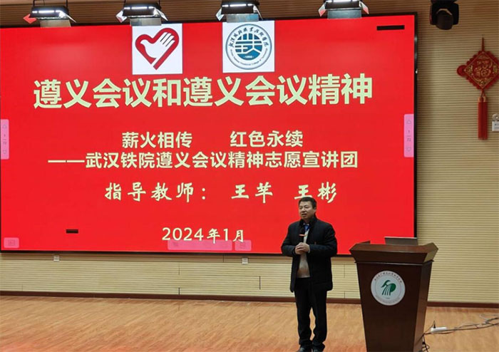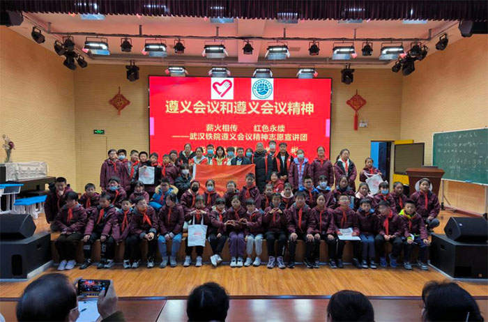 為全面學習貫徹黨的二十大精神,深入貫徹落實習近平總書記提出的“傳承紅色基因、講好遵義故事”的重要指示。2024年1月4日,武漢鐵路職業技術學院鐵道工程學院遵義會議宣講團來到廣埠屯小學(和平分校),為全校師生帶來一場“賡續紅色血脈,弘揚遵義會議精神”的“大思政課”。
