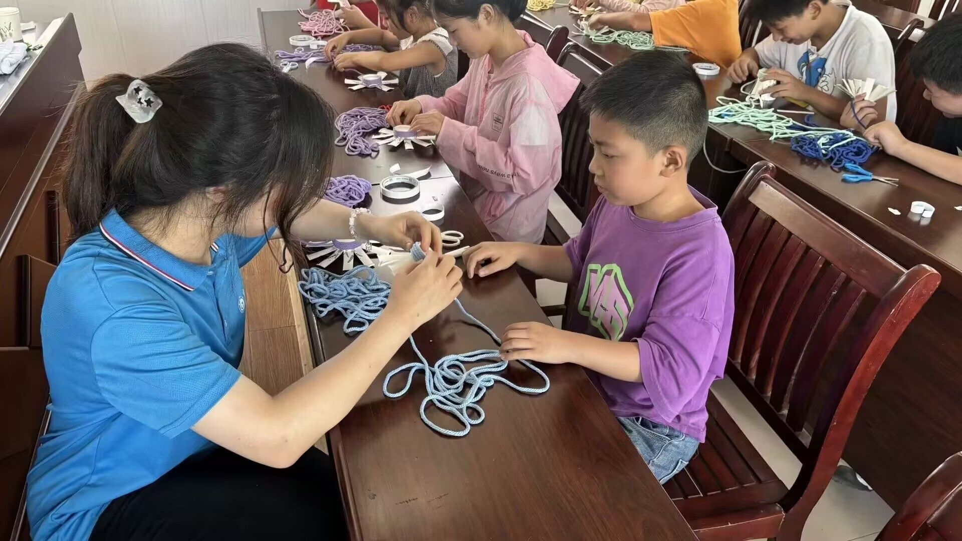 在團隊成員的指導下,學生們還利用各種材料制作出精美的手工藝品,有單獨完成作品的,也有幾個人一起合作的完成一件作品的。開展手工制作活動,不僅鍛煉了學生們的動手操作能力和交流能力,也培養了他們的審美觀和藝術感。在這一過程中,孩子們的想象力和創新思維都得到了極大的發揮。
