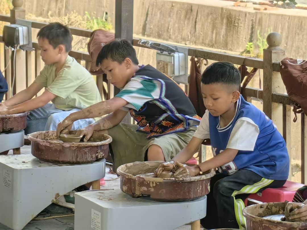 7月19日,在紅河州團委、上新城鄉中心小學校長李文光、原校長李福明等的支持下,“星歌計劃”支教團隊攜參與此次夏令營的49名學生走出校園,前往傣陶文化與多肉植物文化示范村——那里村。同學們實地體驗制陶工藝并感受村莊氣氛,并在當地開展鄉村經濟結構調研和記錄活動。