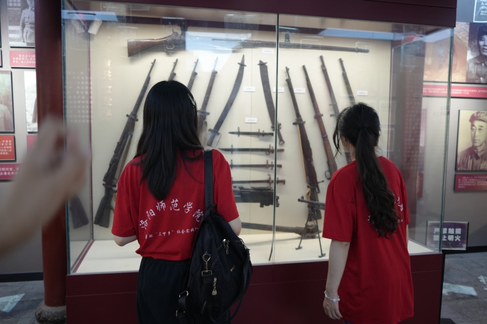 圖為實踐隊員參觀、了解八路軍抗戰期間所用武器。吳清彬 供圖