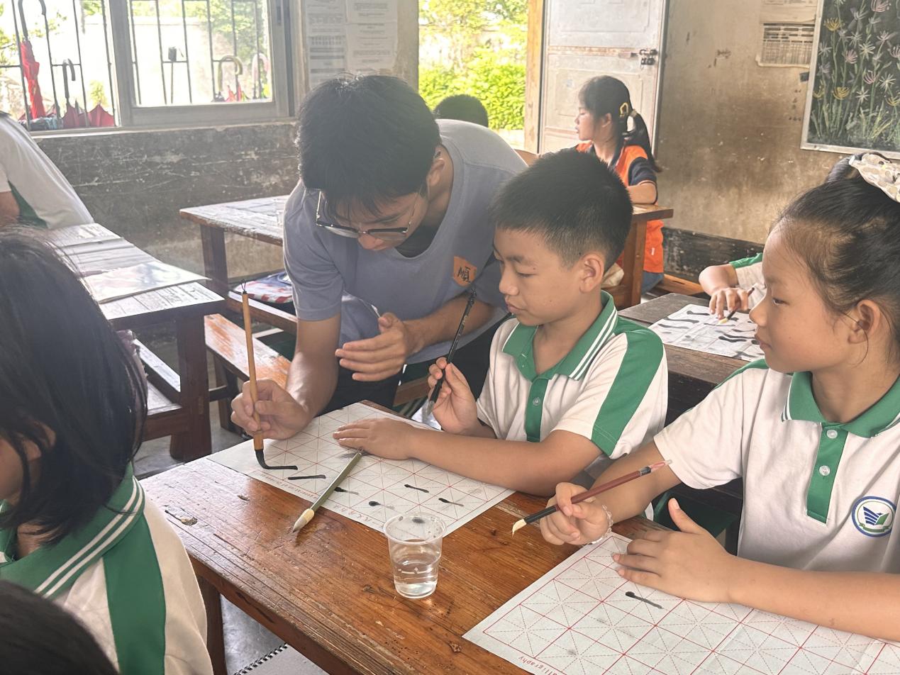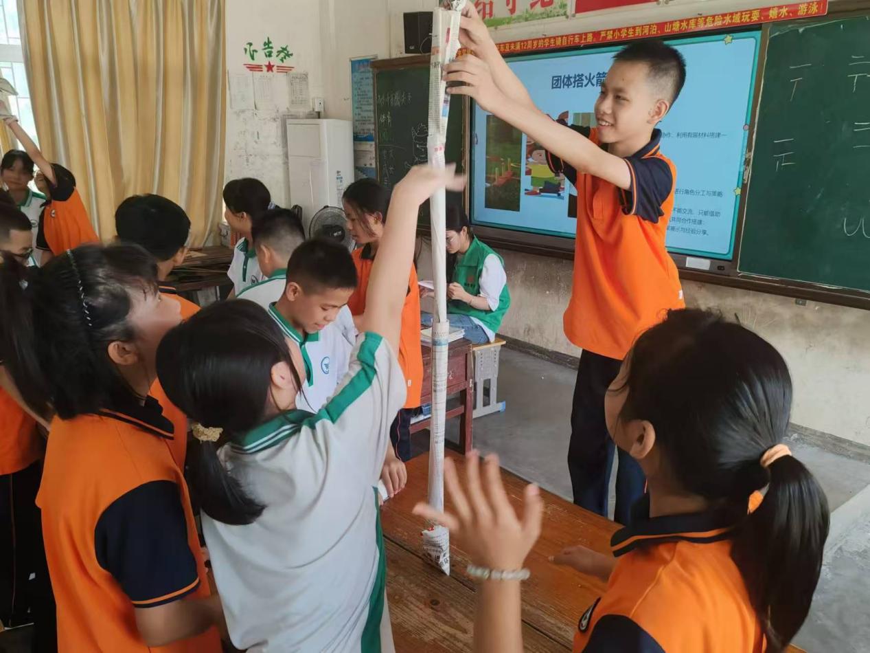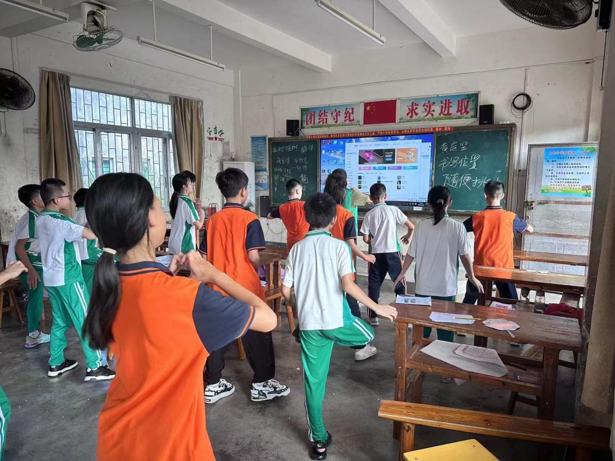 除了開展紅山村調研實踐,梅里尋夢隊的義教組成員們在梅州市五華縣安流鎮上布小學開展了一項為期七天的夏令營活動。在開展中,隊員們將廣州等一線城市的“跨學科”趣味課堂融入了上布村教育實踐當中。