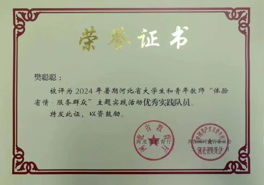 喜報|我系在2024年暑期河北省大學生和青年教師“體驗省情·服務群眾”主題實踐活動中取
