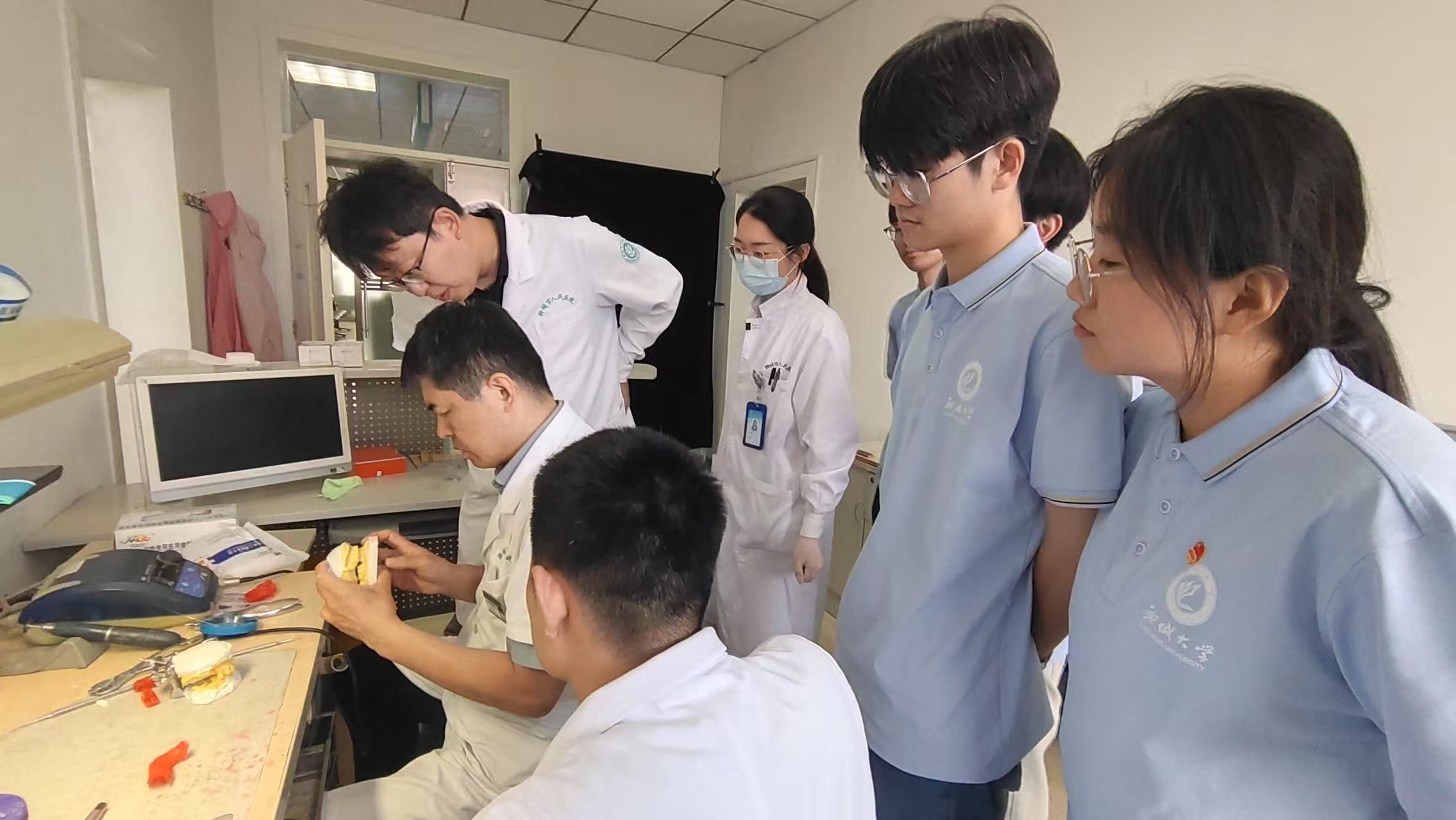 與此同時,醫學院的學生們穿梭在大街小巷,發放調查問卷,廣泛收集村民們的口腔健康信息;特別關注村中患有齲病、牙痛等問題的老人,主動上前,為老人們進行口腔知識宣傳。志愿者們用生動的例子和熱情的態度,向老人們講解Bass刷牙法、口腔清潔的重要性以及常見口腔疾病的預防措施等知識。下午,志愿者赴聊城市人民醫院向專業醫師進行實踐學習,協助并觀察學習了牙𬌗的𬌗架放置、彎制卡環、填導凹、卡環固定等專業操作。