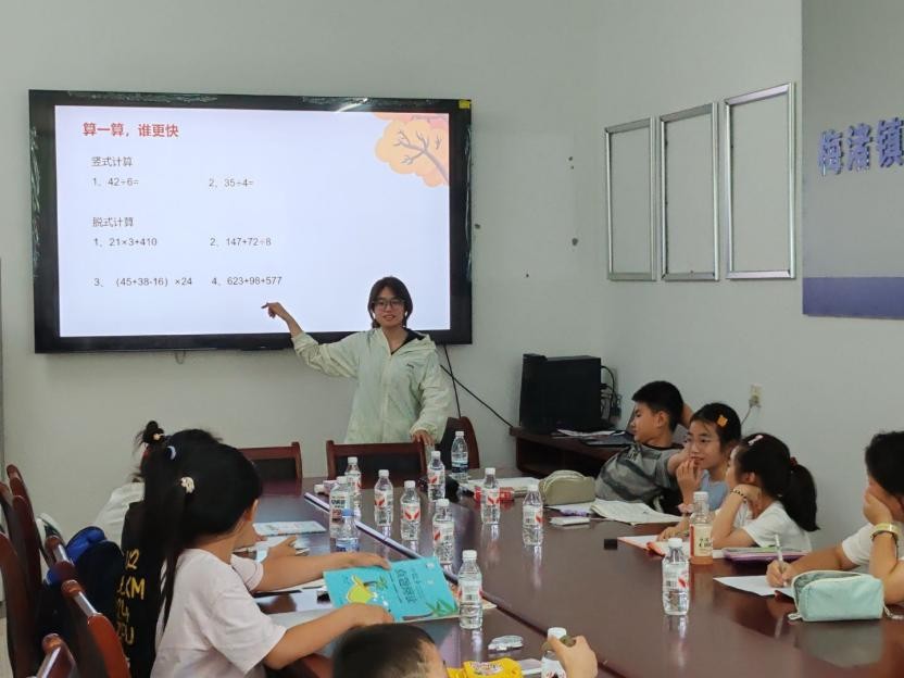 這支由數學與應用數學(師范)、大數據管理與應用專業組成的實踐隊,以“關愛兒童,打造七彩假期”為目標,從少先隊引領到藝術培養,從體育互動到心理關懷,為孩子們編織多維成長的“守護網”。抵達首日,成員們顧不上休息,擺開貼畫、小紅旗等獎勵品和教學用具,期待與孩子們的第一場互動。