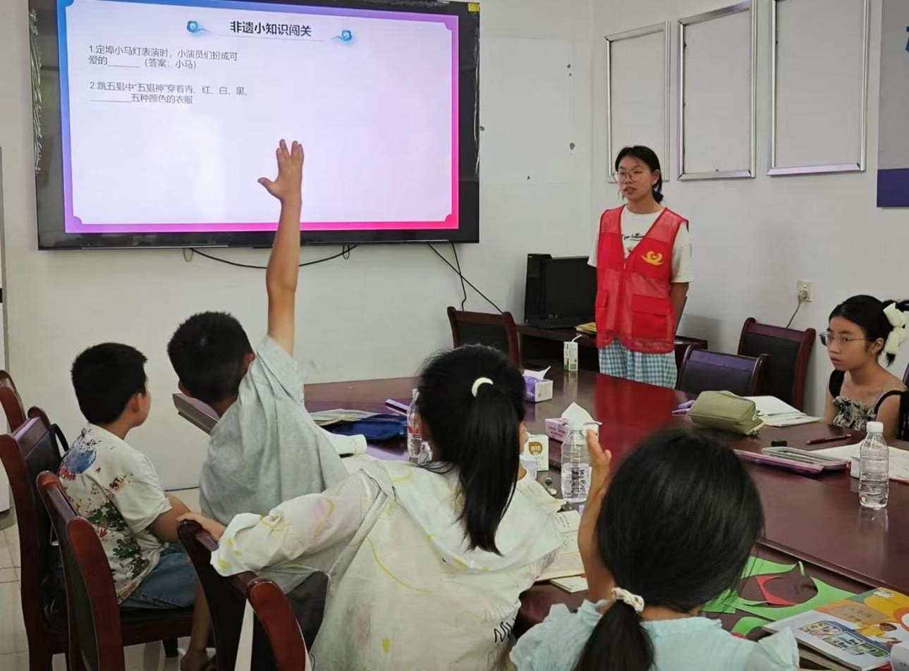 團隊用童趣語言與互動,開展系列主題宣講。7月3日防溺水課堂上,志愿者模擬“落水救援”時,孩子們瞪圓眼睛舉手:“我會喊大人!”7月4日非遺宣講中,聽到五猖的神秘起源以及威風凜凜的模樣,一位小朋友拽著志愿者衣角笑:“我要學這個!”在故事演繹與問答游戲里,孩子們的笑聲此起彼伏,眼里閃爍著求知的光。這些課堂讓知識扎根心底,激發孩子強烈的求知欲,播撒向上的種子。