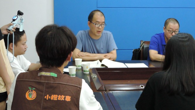 表 1圖為小橙故事社會實踐隊隊員認真傾聽農業農村局領導講話