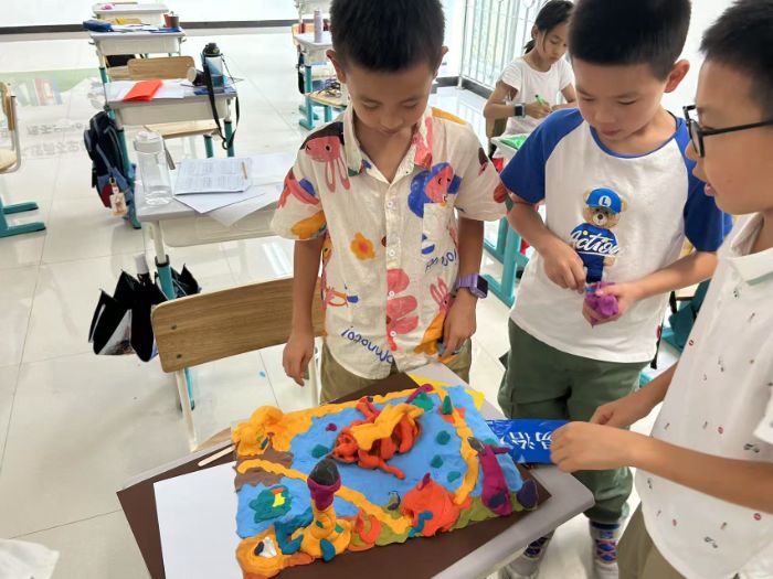 在下午的粘土制作課程中,老師引導孩子們觀察現實世界的環境、植物生長的形態特征,屏幕上的圖片只是靜態的呈現,但在老師的講解下,定格的畫面也變得鮮活靈動、有聲有色起來,領略過不同風采后,孩子們認識到人類處在變化萬千的宇宙之中,周遭的事物都藏著獨特的美麗與色彩,需要自己去探尋。