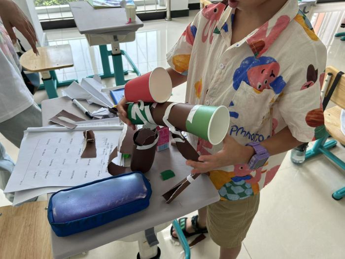 他們的作品不僅有可愛動物造型,更有創新的“紙杯炮臺”,展現出孩子們不受拘束的創造力。完成作品后,孩子們興致沖沖地交流創作心得,在交流中,孩子們收獲靈感與快樂,不斷完善自己的作品,教室成了充滿歡聲笑語的小天地。