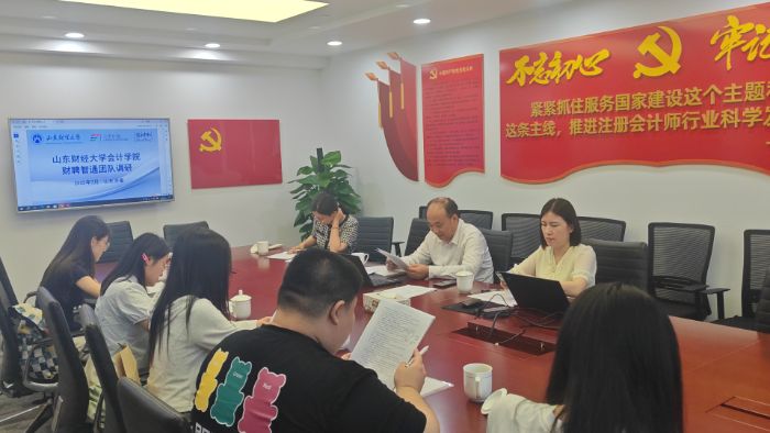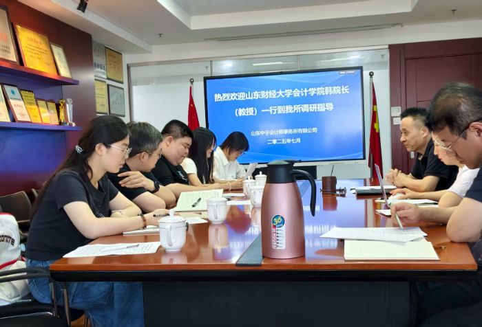 7月3號上午,在韓躍老師帶領下,團隊前往山東中宇會計師事務所有限公司進行調研,楊所長、王總與蓋老師熱情招待了調研團隊。
