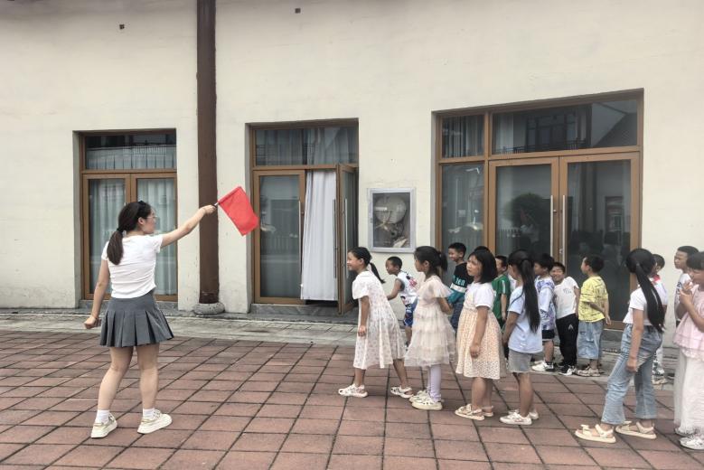 哨音一落,石板廣場像剛剛熄火的灶臺,還留著燙腳的溫度。陽光從屋檐傾瀉下來,把隊伍切成明暗兩截——亮處汗光閃閃,暗處衣色發深;氐浇淌业暮⒆觽,有的汗水在領口洇出深色的一圈,卻抬頭沖老師展示獲得的小紅花;有的一邊喘氣一邊笑,嗓子里面還帶著剛剛歡呼后的沙啞。一堂課把盛夏的熱、童真的亮,全混進他們濕漉漉的衣服里,帶回了教室。汗水浸透了正盛的暑熱,童真融化了午后的光影。