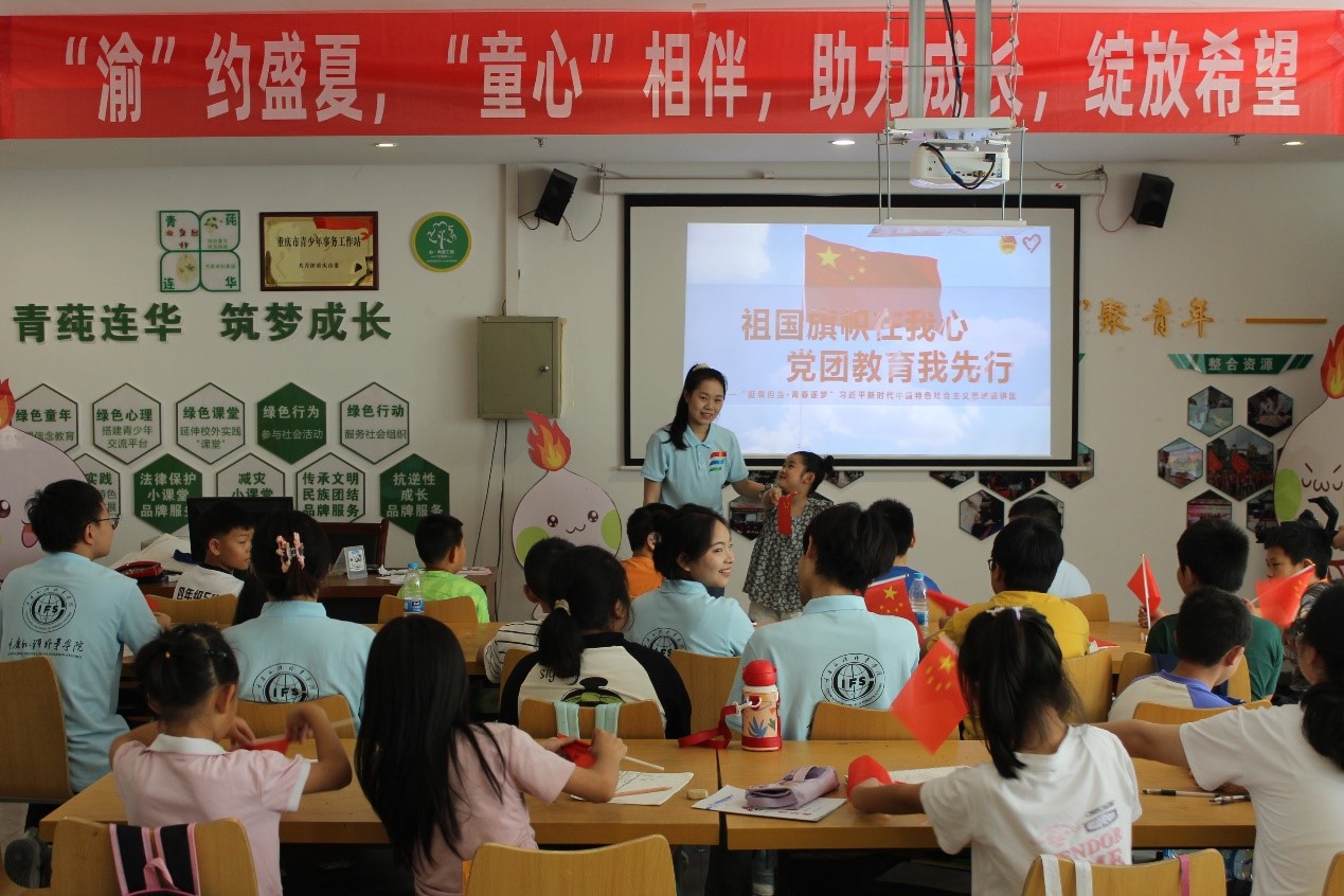為深入學習貫徹習近平新時代中國特色社會主義思想和黨的二十大精神,切實加強對少年兒童群體的關心關愛,組織動員青年以實際行動投身中國式現代化建設。7月14日,重慶外語外事學院“挺膺擔當·青春逐夢”習近平新時代中國特色社會主義思想宣傳團于重慶市石柱土家族自治縣民族文化中心青少年之家,開展為期十天的暑期社會志愿服務活動。