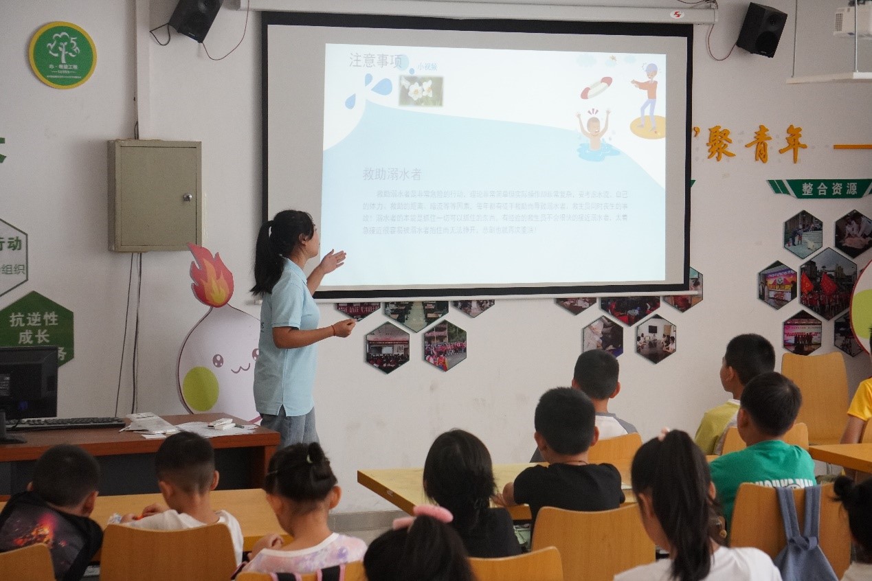 以安全為線,敲響警鐘本宣講團開展了開展防洪水、防溺水安全知識教育宣講。防洪水安全知識教育主講人熊璐璐結合當地地勢講解如何預防洪水、如何應對暴雨山洪等相關知識。小朋友崔佳宜說:“我們只有了解洪水,才能在災害來臨之時更好的保護自己。”防溺水安全知識教育本團隊成員胡金蓉,以真實事件引入,向小朋友們普及了防溺水知識,教授小朋友們如何識別潛在的水域危險,并展示了自救和他救的基本技巧,讓學生了解溺水事故的發生原因和教訓,給小朋友們敲響了安全警鐘,引導他們形成正確的水上安全意識和行為習慣,讓他們更加懂得嚴防溺水的重要性。同時,兩位主講人還設置了現場提問互動環節,提醒孩子們珍惜生命,遠離災害高發地區,讓防洪水、防溺水知識入腦入心、見行見效。