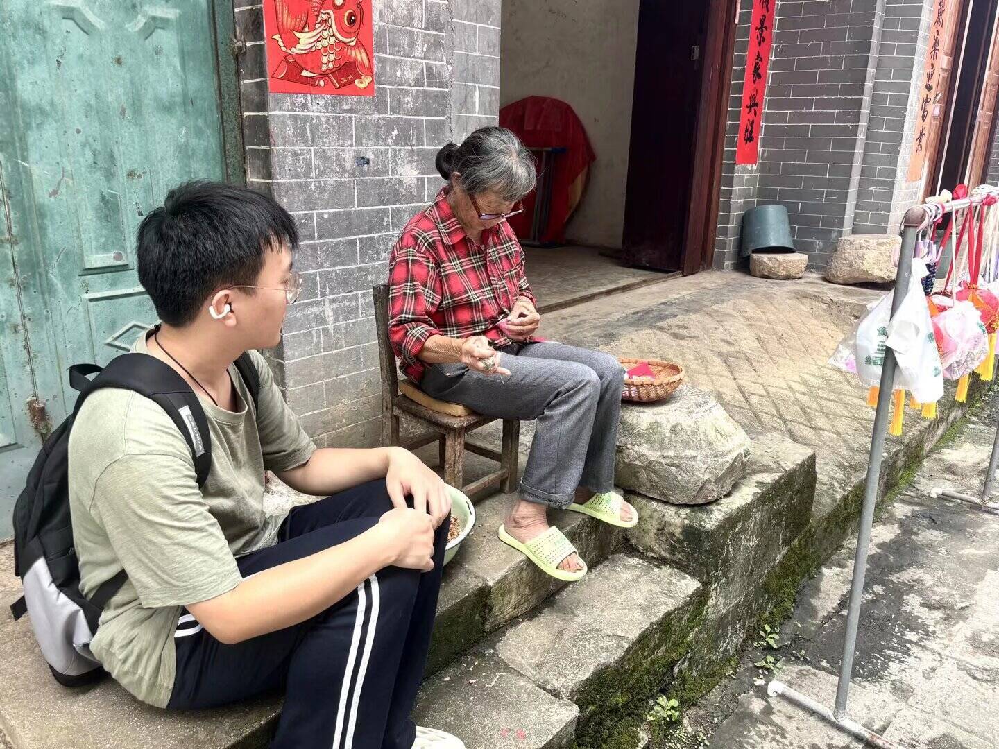 圖2 實踐團隊成員黃柯嵐與韋奶奶交流